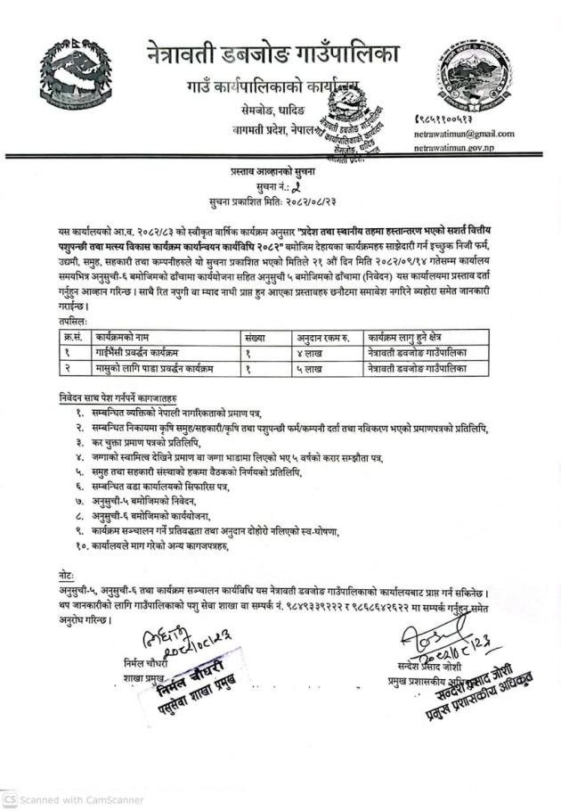 प्रस्ताव आव्हानको सूचना