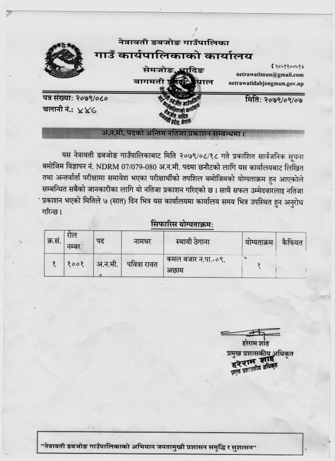 अ.न.मी. पदको अन्तिम नतिजा प्रकाशन सम्बन्धी सूचना !!