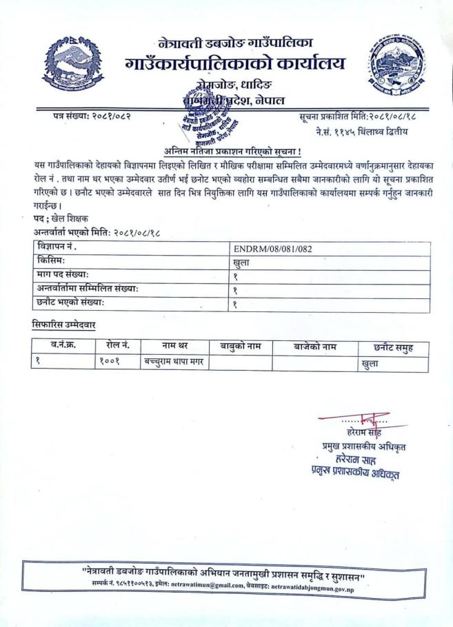 अन्तिम नतिजा प्रकाशन गरिएको सूचना !!!