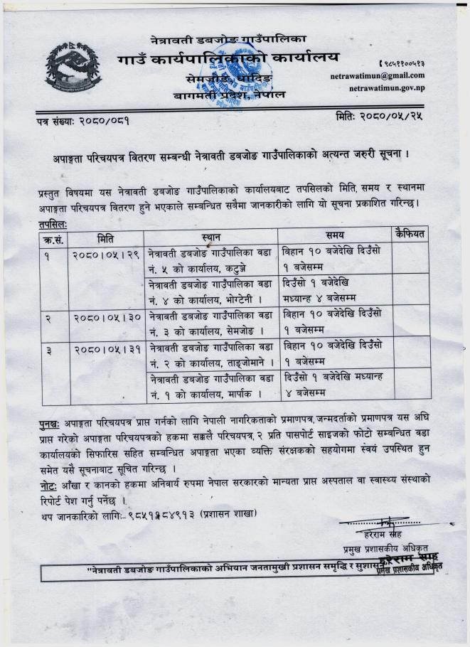 अपांगता परिचयपत्र वितरण सम्बन्धी अत्यन्तै जरुरी सूचना !!