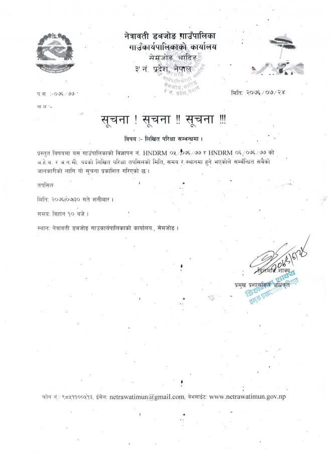 अ‍. ह‍े .ब. / अ. न. मी. पदकाे लिखित परिक्षा सम्बन्धी सूचना !