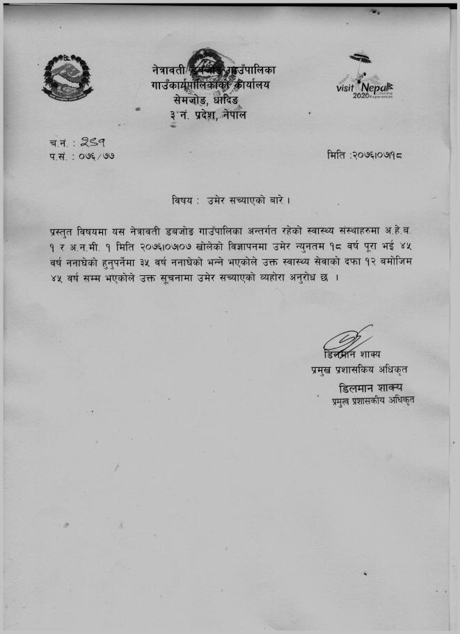 उमेर सच्याएकाे सम्बन्धि सूचना ।