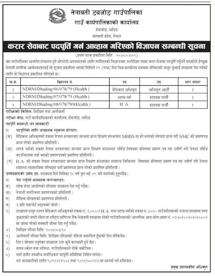करार सेवाबाट पदपुर्ति गर्न आव्हान गरिएकाे विज्ञापन सम्बन्धी सूचना !!!