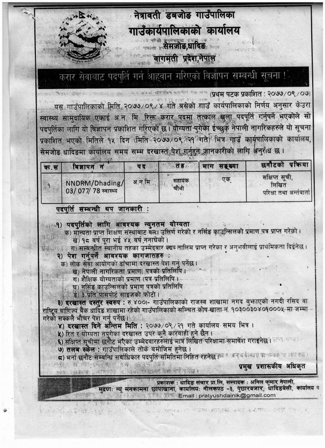 करार सेवाबाट पदपुर्ति गर्न आह्वान गरिएकाे विज्ञापन सम्बन्धी सूचना ।