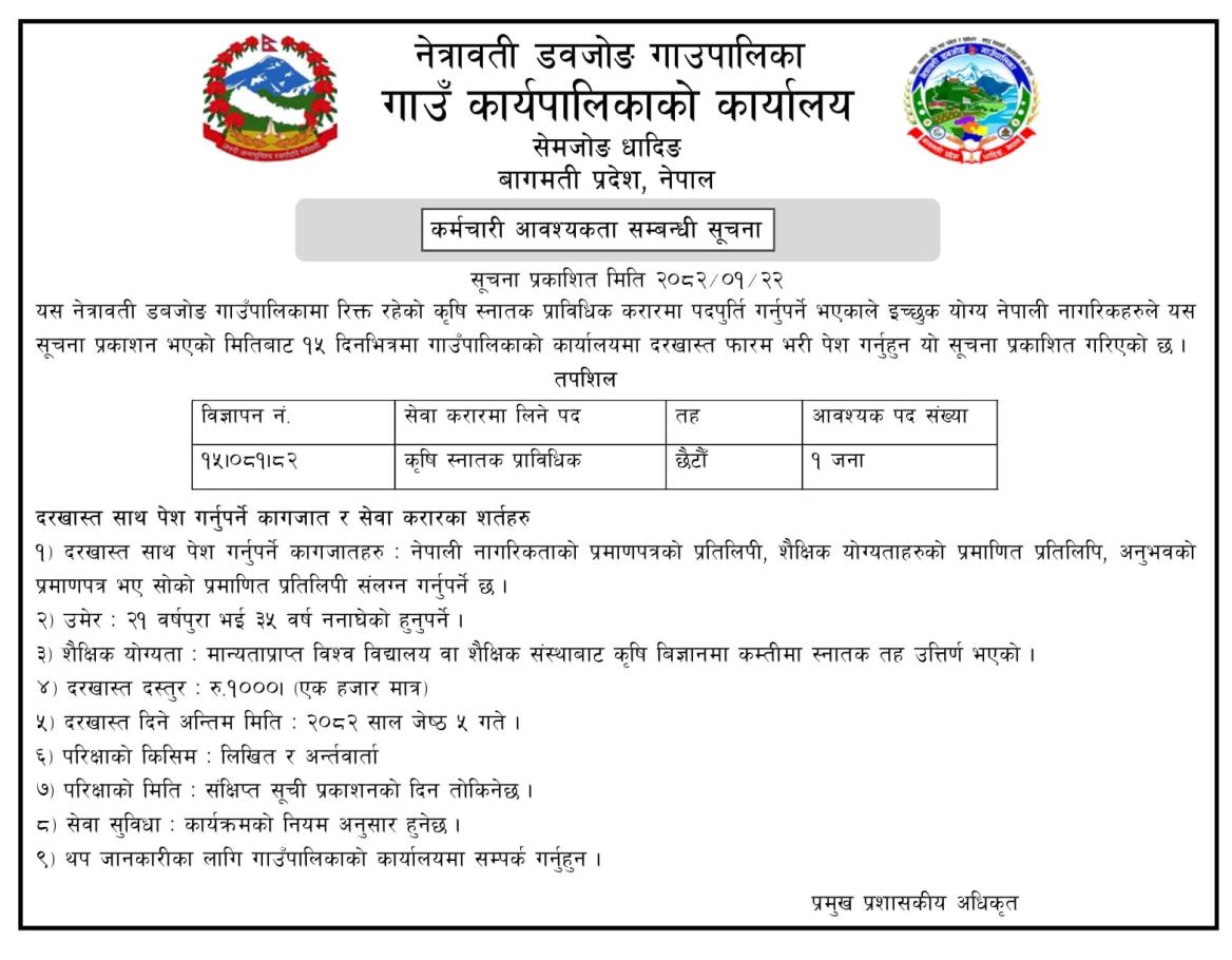कर्मचारी आवश्यकता सम्बन्धी सूचना ।
