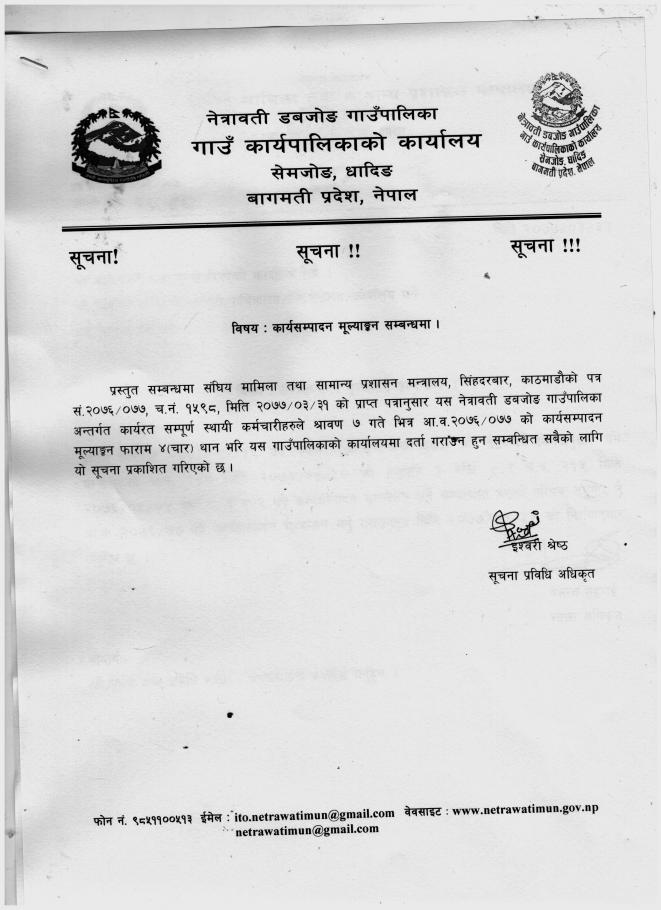 कार्यसम्पादन मूल्याङ्कन सम्बन्धमा ।