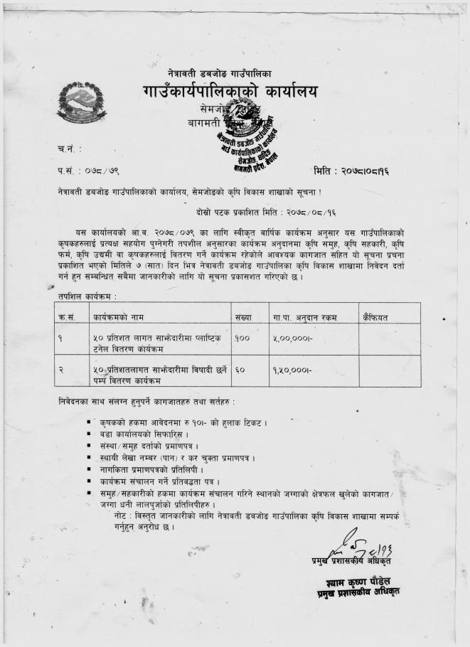 कृषि विकास शाखाको सूचना !!!