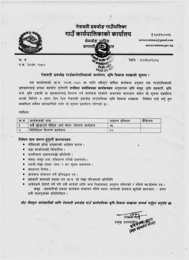 कृषि विकास शाखाको सूचना !!!