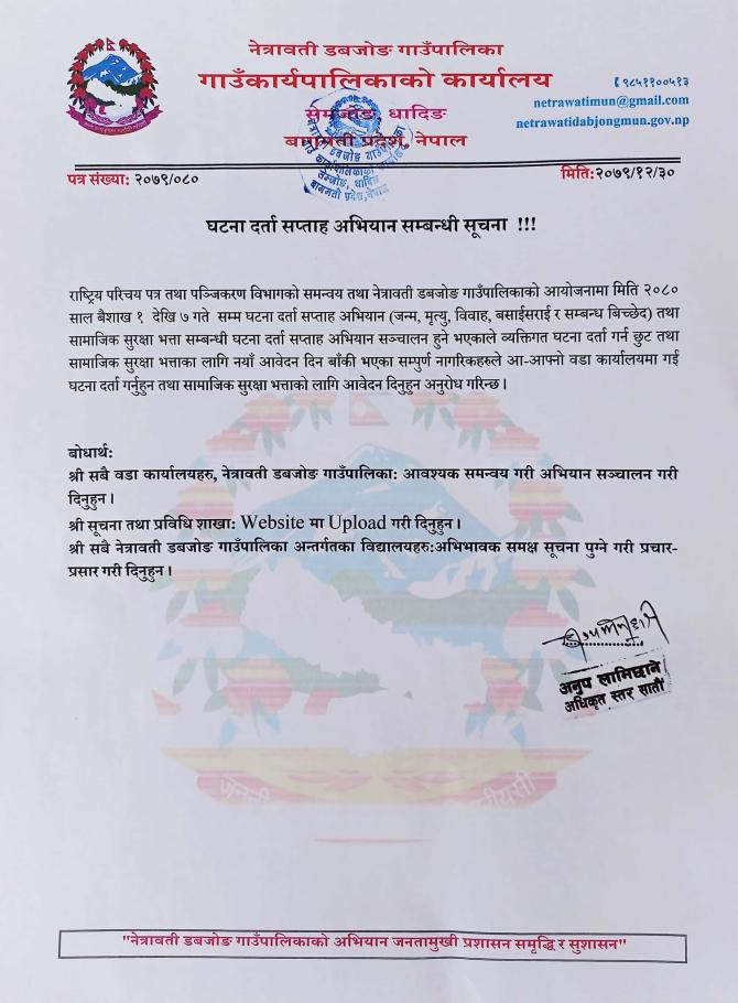 घटना दर्ता सप्ताह अभियान सम्बन्धी सूचना !!!
