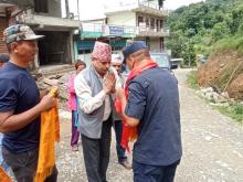 प्रमुख जिल्ला अधिकारी श्री कृष्ण प्रसाद लम्साल तथा जिल्ला प्रहरी कार्यालय धादिङका प्रहरी उपरिक्षक श्री राकेश सिंह लगायतका व्यत्तिहरुलाई गाउँपालिकामा स्वागत गर्दाको तस्बिरहरु
