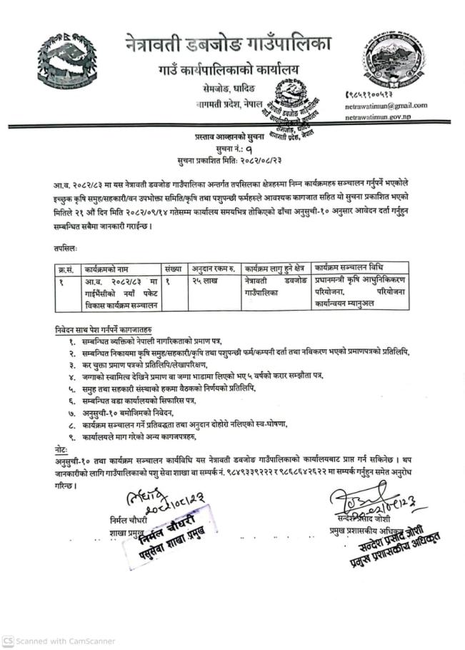 प्रस्ताव आव्हानको सूचना
