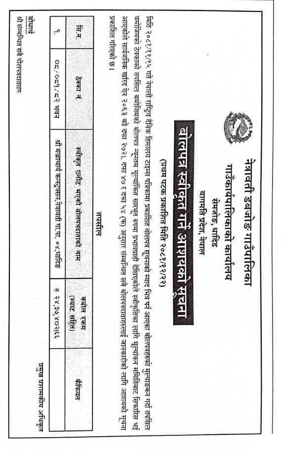 बोलपत्र स्वीकृत गर्ने आशयको सूचना !!!