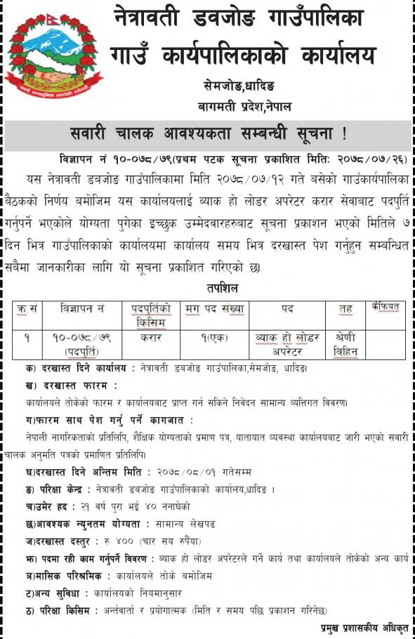 ब्याक हो लोडर आवश्यकता सम्बन्धी सूचना !!!