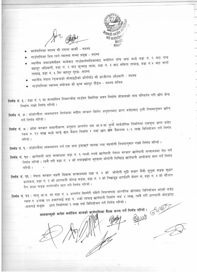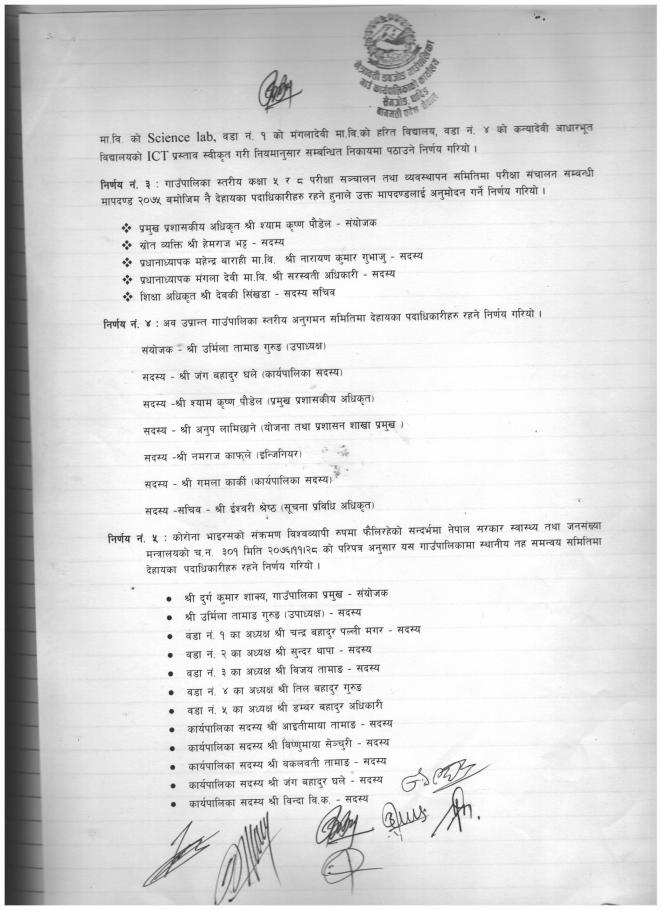 मिति २०७६।१२।०२ गते बसेको गाउँकार्यपालिकाको निर्णयहरु
