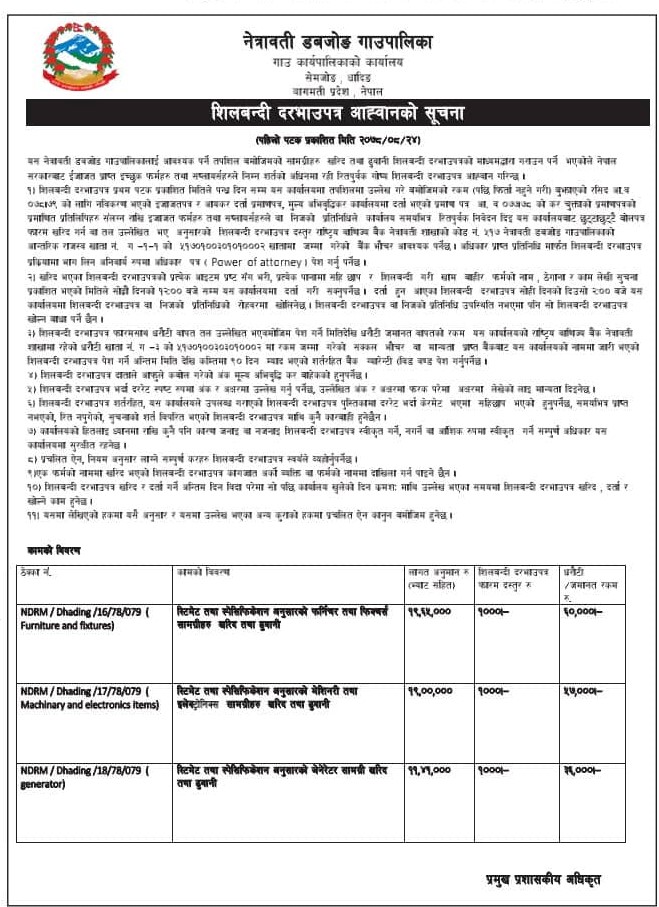 शिलबन्दी दरभाउपत्र आह्वानकाे सूचना !!!