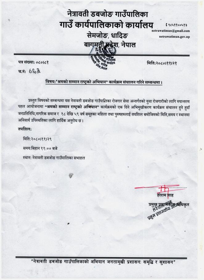 श्रमको सम्मान राष्ट्रको अभियान कार्यक्रम सम्बन्धी सूचना !!!