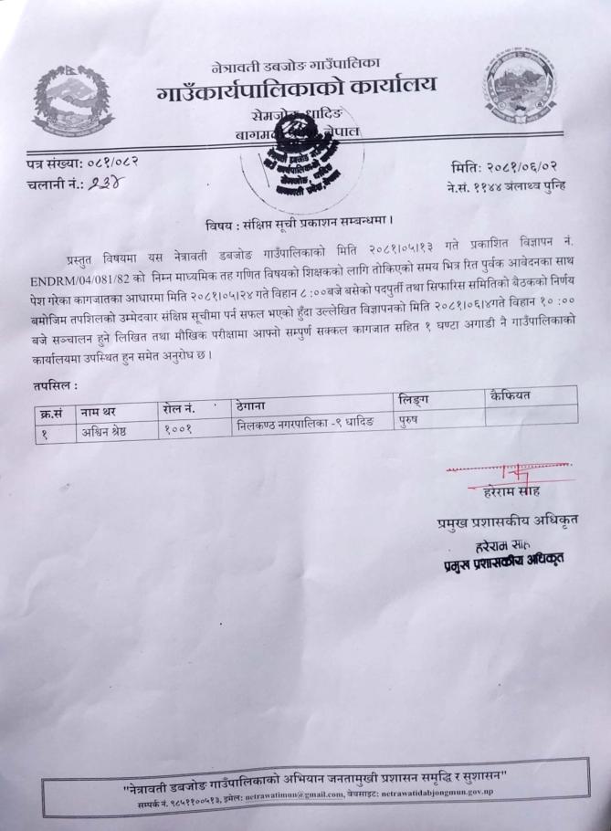 संक्षिप्त सुचि प्रकाशन सम्बन्धी सूचना !!!