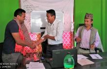 समायाेजन भएर आउनु भएको लेखा अधिकृत सरलाइ स्वागत गर्नु हुदै नेत्रावती डबजोङ गाउँ कार्यपालिकाको प्रमुख प्रशासकिय अधिकृत ।