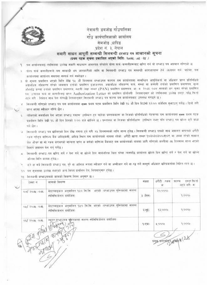 सवारी साधन अापुर्ती सम्बन्धी सिलबन्दी दरभाउ पत्र अाव्हानकाे सूचना