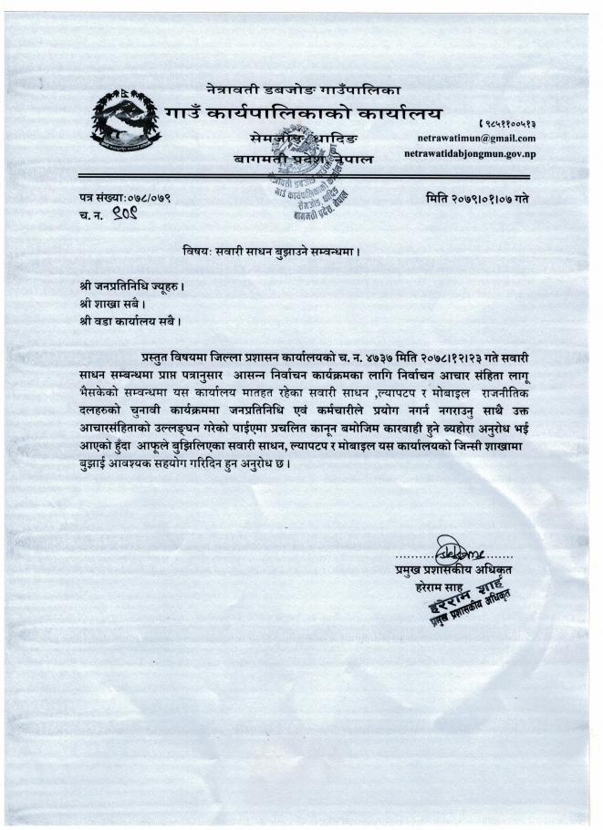 सवारी साधन बुझाउने सम्बन्धी सूचना !!!