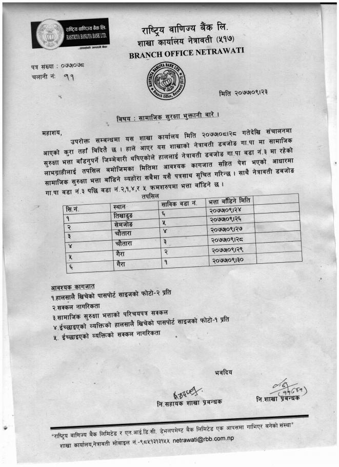 सामाजिक सुरक्षा भुक्तानी सम्बन्धी सूचना ।