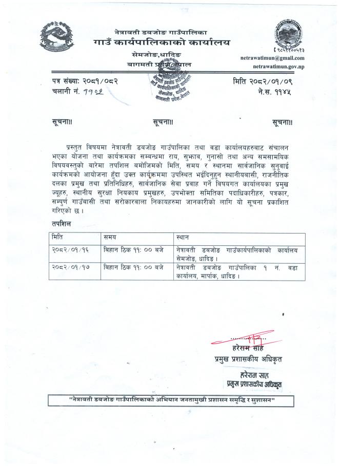 सार्वजनिक सुनुवाई सम्बन्धी सूचना