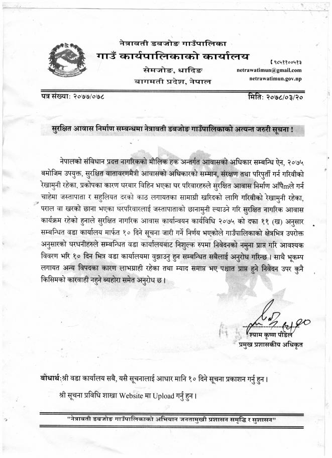सुरक्षित आवास निर्माण सम्बन्धी सूचना ।